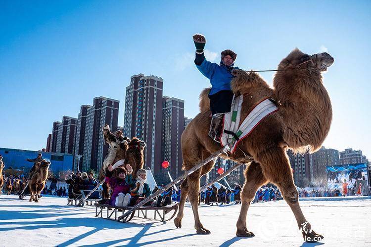 冰雪那达慕是传统与现代的精彩碰撞。7万平方米的场地里,雪制主礼台与森林木屋相映成趣,13米高的未来机车冰雕成为游客打卡热点。骆驼队、驯鹿雪橇依次登场,呼麦、长调、非遗表演轮番上演,蒙古包群、美食大集、牧户体验区联动发力,近30家商家入驻,12个盟市、14个旗市区的特色风物集中展示。线上直播与线下集章互动,让“吃住行游购娱”全链条升级。“刚从襄阳十几度的天气过来,滑了冰屋滑梯,冷但特别开心!”北京游客燕七作为越野行业从业者,多次到访呼伦贝尔,仍被海拉尔的冬季魅力所倾倒。