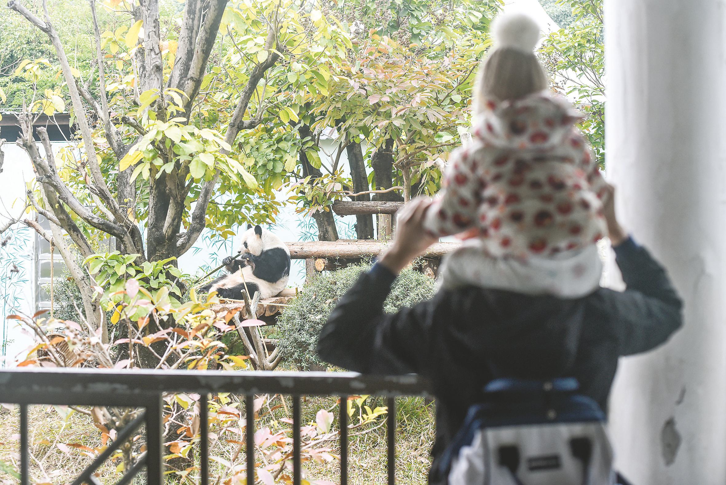 游客近距离观看熊猫。 本报记者韦峭 摄