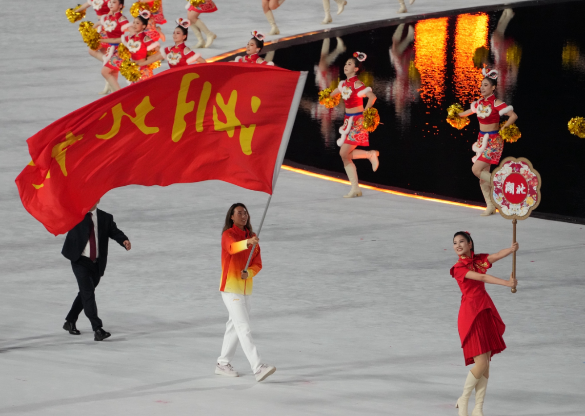 全运会开幕式,湖北代表团入场,郑钦文担任旗手。